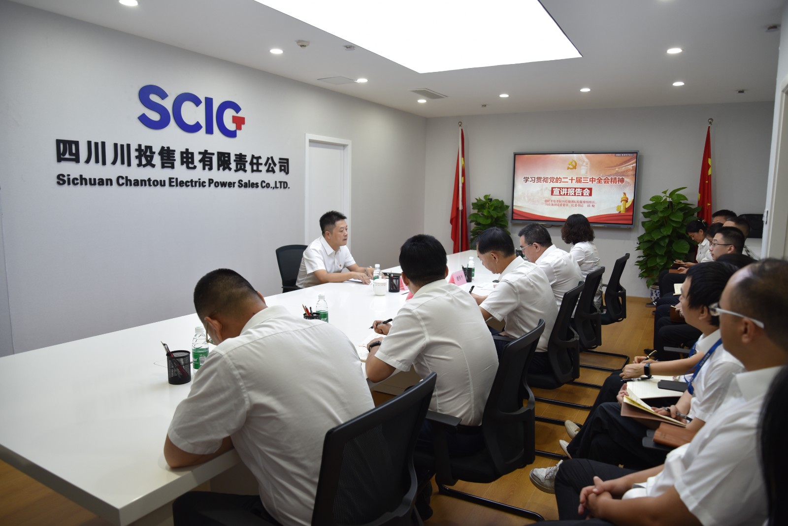 川投售電領(lǐng)導(dǎo)班子成員、全體黨員職工參加宣講會(huì)。
