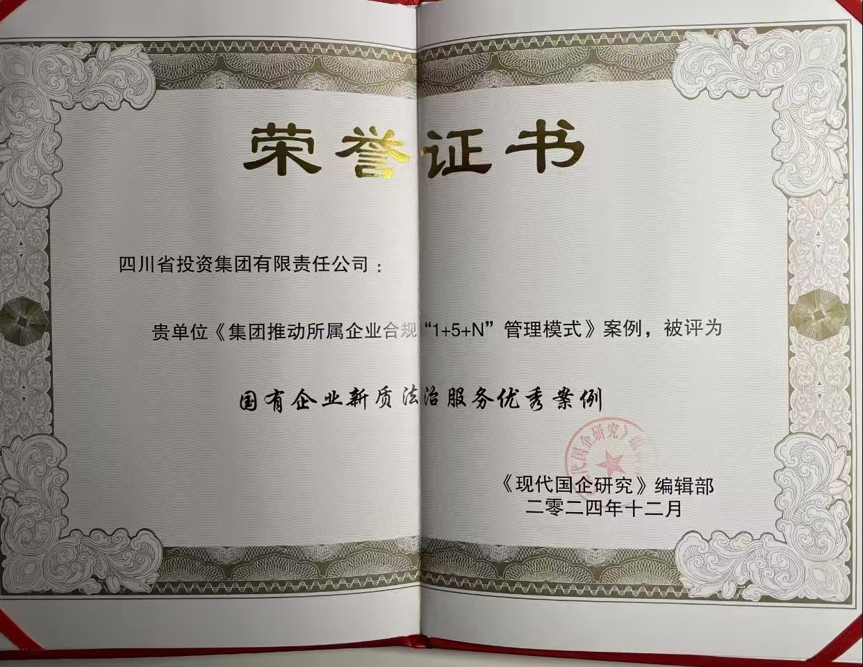 2024年12月15日,由《現(xiàn)代國企研究》雜志主辦、廣西壯族自治區(qū)國資委協(xié)辦的“2024現(xiàn)代國企發(fā)展年會”在北京召開,會上發(fā)布了“國有企業(yè)新質法治服務優(yōu)秀案例”,四川省投資集團有限責任公司(以下簡稱“川投集團”)榜上有名。