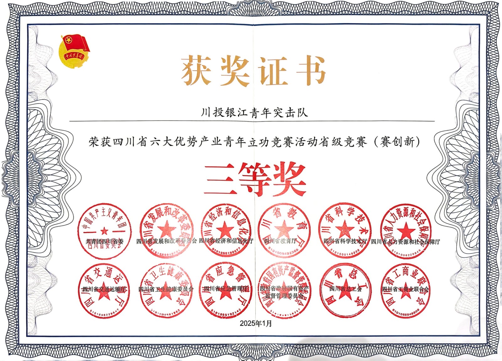 1月8日,四川省六大優(yōu)勢(shì)產(chǎn)業(yè)青年立功競(jìng)賽活動(dòng)頒獎(jiǎng)儀式在成都舉行。川投銀江青年突擊隊(duì)、資陽(yáng)口職院“牙谷先鋒”創(chuàng)新育人青年突擊隊(duì)從全省415支青年突擊隊(duì)中脫穎而出,分別榮獲賽創(chuàng)新、賽育人三等獎(jiǎng)。