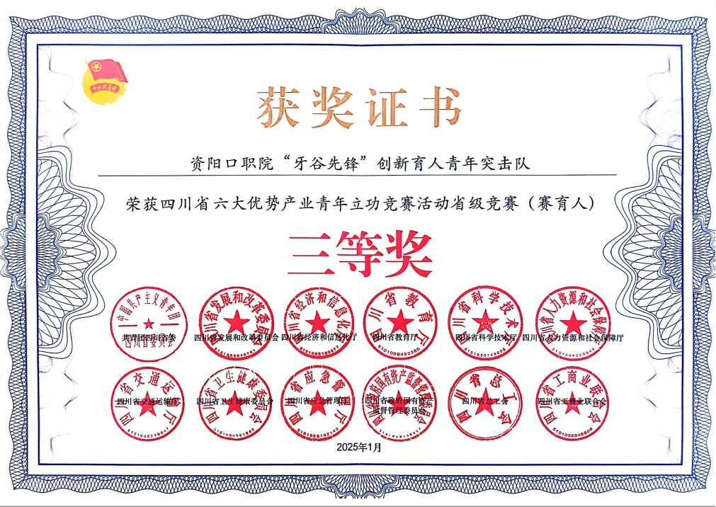 展望未來(lái),資陽(yáng)口職院“牙谷先鋒”創(chuàng)新育人青年突擊隊(duì)將繼續(xù)發(fā)揮自身優(yōu)勢(shì),進(jìn)一步加強(qiáng)與行業(yè)內(nèi)企業(yè)的合作,不斷深化產(chǎn)學(xué)研用融合,激勵(lì)更多青年學(xué)子投身口腔醫(yī)學(xué)事業(yè),為奮力推動(dòng)四川口腔產(chǎn)業(yè)的發(fā)展再上新臺(tái)階、全面建設(shè)社會(huì)主義現(xiàn)代化四川貢獻(xiàn)青春力量。