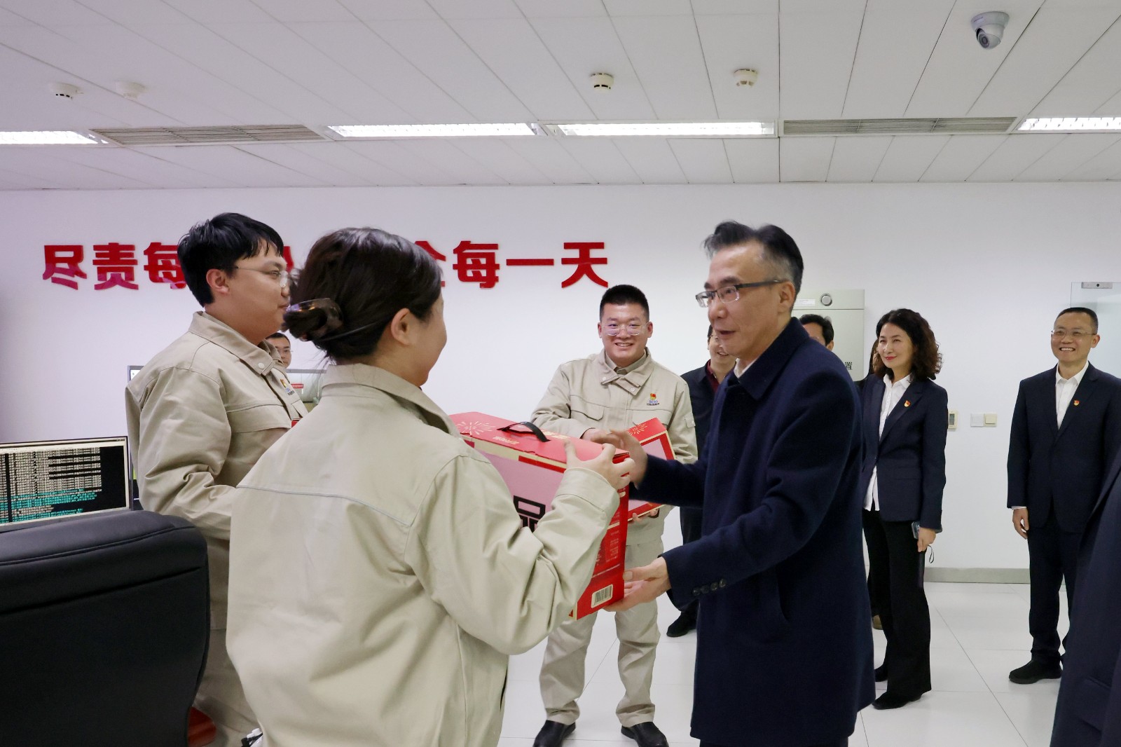 在川投田灣河流域調(diào)度中心,吳曉曦與大家親切交談,送上慰問品及新春祝福,并詳細(xì)了解當(dāng)前電力生產(chǎn)運(yùn)行情況,聽取了川投田灣河工作匯報(bào)。