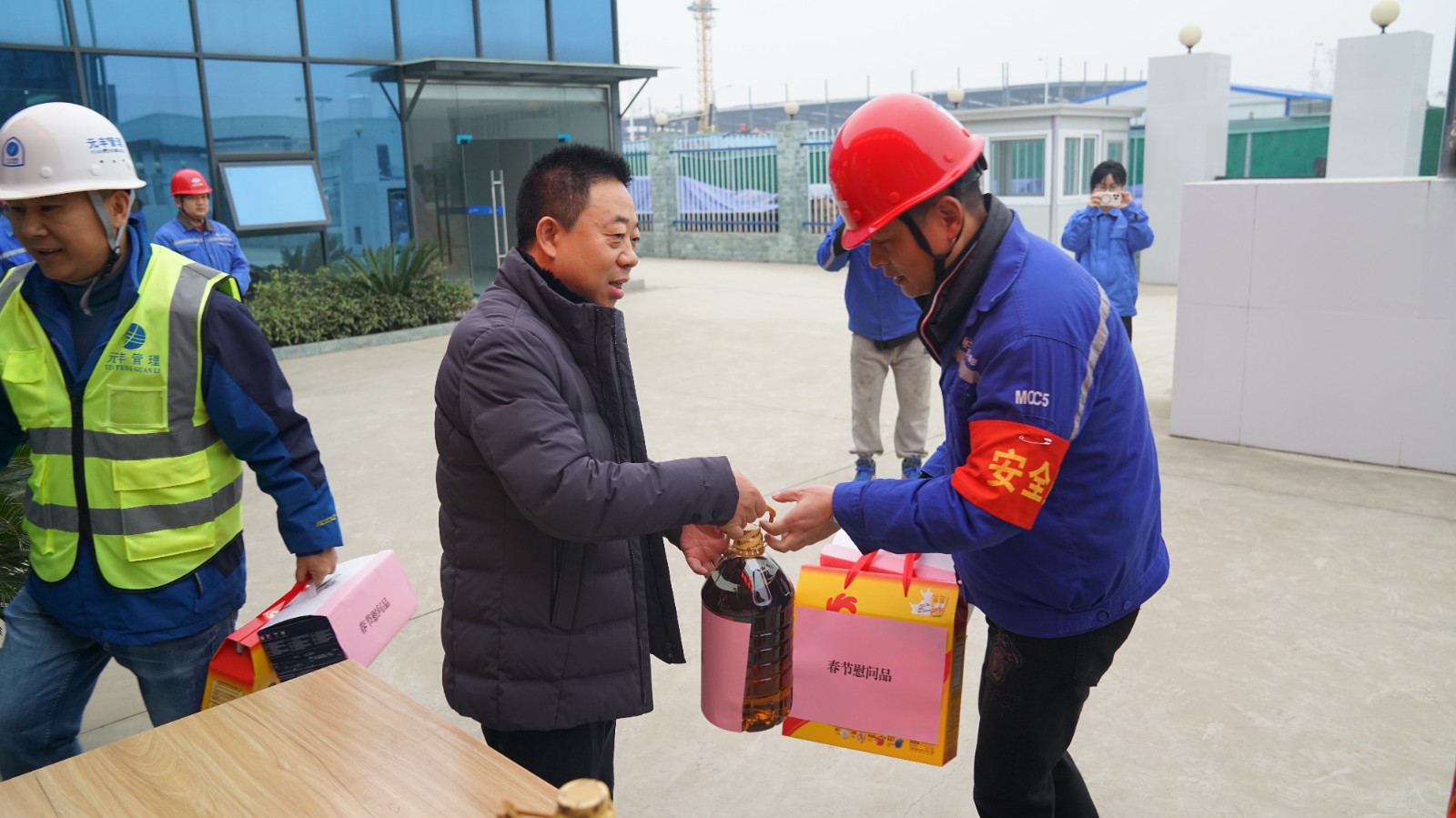 肖長青一行首先來到宏明電子所屬宏明宏科新型電子元器件及集成電路生產(chǎn)項(xiàng)目基地,向仍然堅(jiān)守在建設(shè)現(xiàn)場的施工人員致以新春問候和祝福,并發(fā)放節(jié)日慰問品,并現(xiàn)場檢查了安全生產(chǎn)管理工作落實(shí)情況。隨后來到宏明電子本部,向技術(shù)代表致以新春問候和祝福,并發(fā)放節(jié)日慰問品。