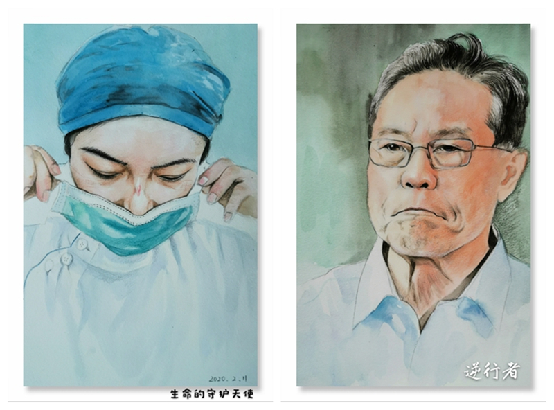 練文娟是川投能源所屬交大光芒職工文宇德的愛人。疫情發(fā)生以來,文宇德就被派往外地值守。練文娟在家里每天只能通過微信視頻和自己的丈夫聯(lián)絡(luò),擔(dān)心和思念之情,化作了手中的畫筆,她以鐘南山院士為原型,別具匠心地創(chuàng)作了系列水彩畫,向一線醫(yī)務(wù)工作者致敬。