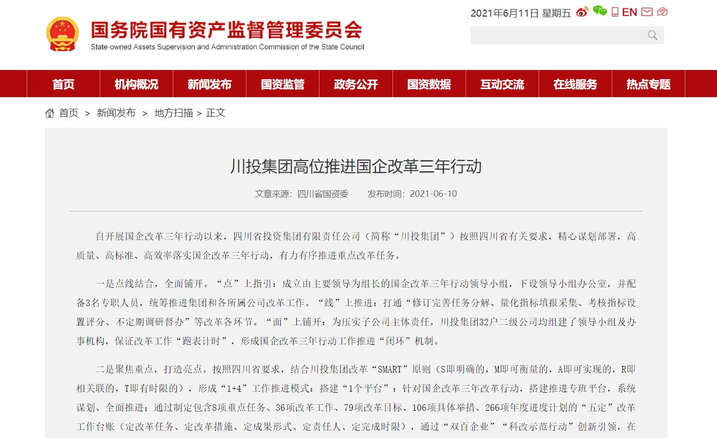 自開展國企改革三年行動以來,四川省投資集團(tuán)有限責(zé)任公司(簡稱“川投集團(tuán)”)按照四川省有關(guān)要求,精心謀劃部署,高質(zhì)量、高標(biāo)準(zhǔn)、高效率落實(shí)國企改革三年行動,有力有序推進(jìn)重點(diǎn)改革任務(wù)。