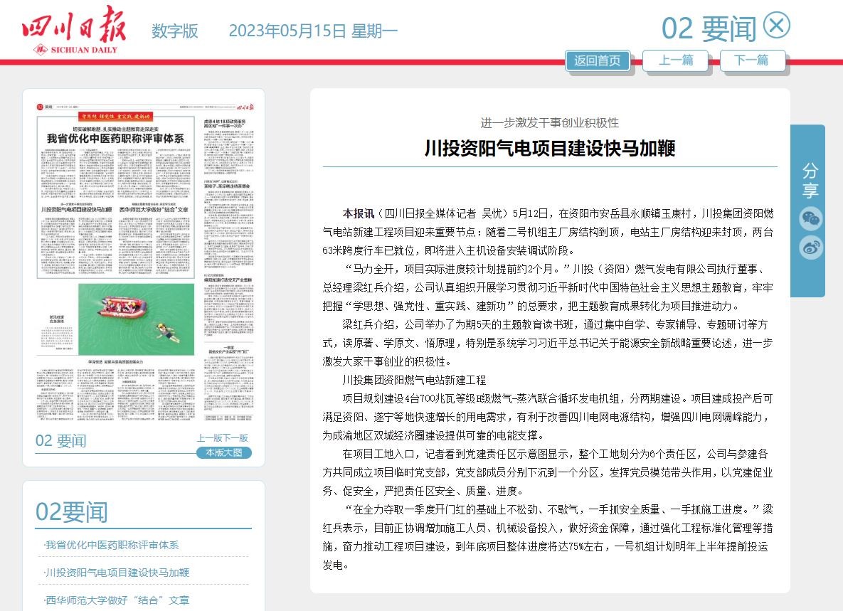 川投集團資陽燃氣電站新建工程