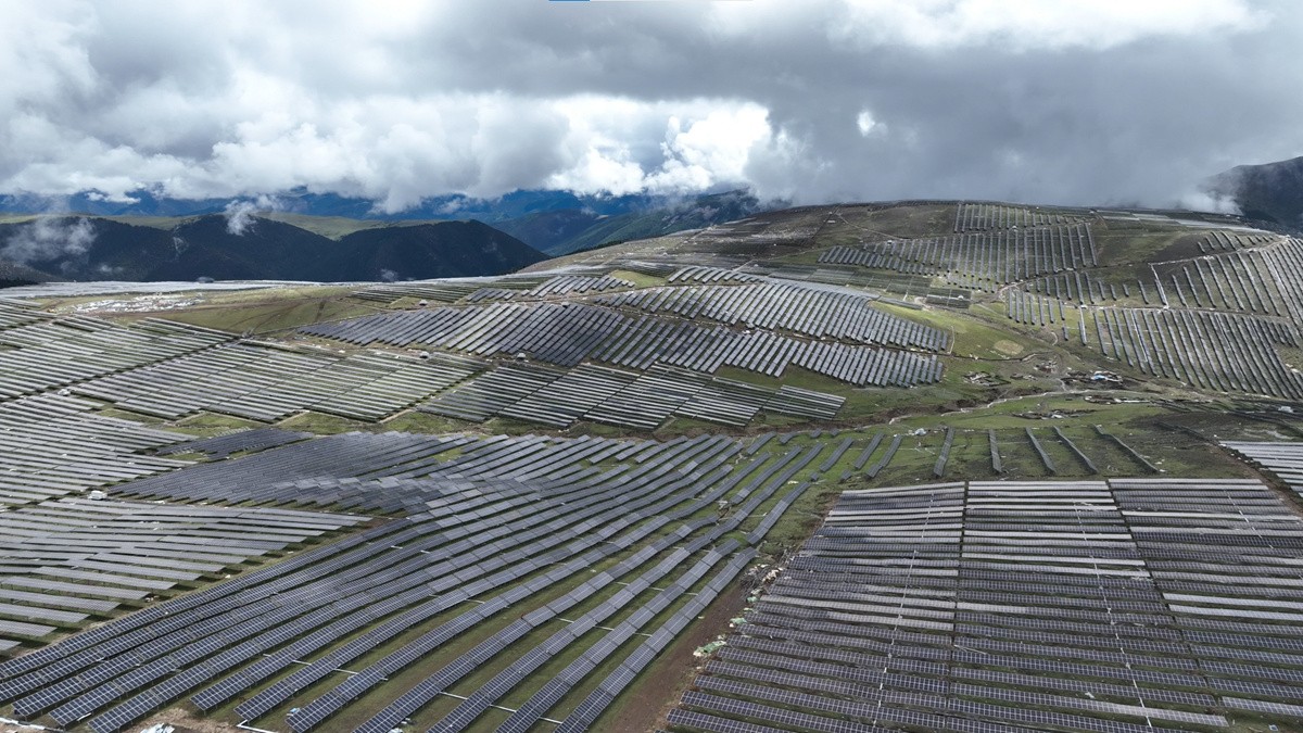 與兩河口水電站距離約50公里的柯拉一期光伏電站,200多萬塊光伏板,將最高海拔4600米的扎拉托桑山裝點成一片“光伏?!薄?/span>
