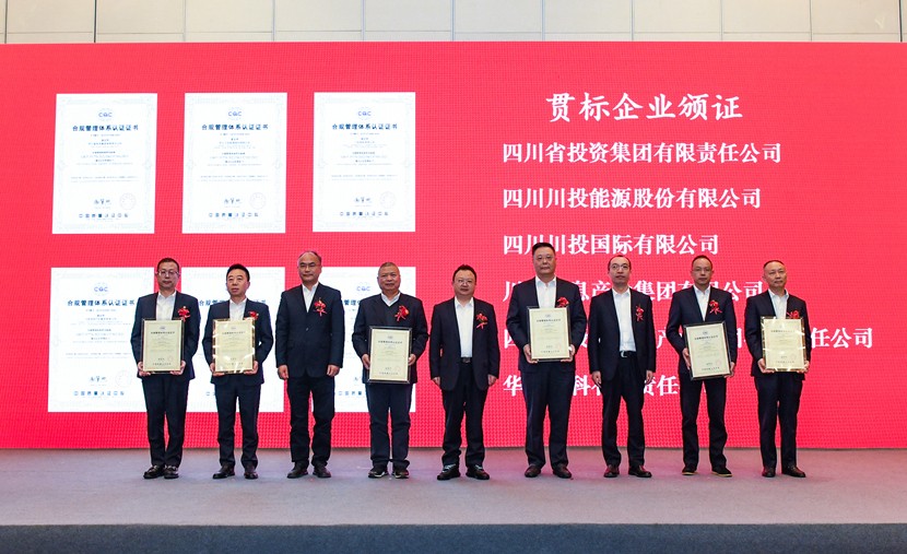四川省投資集團有限責(zé)任公司(以下簡稱“川投集團”)作為四川省首批合規(guī)管理試點企業(yè),以“1+4+N”模式開展合規(guī)管理探索試點,建立了合規(guī)管理組織推進體系、制度體系、運行體系和保障體系。在合規(guī)管理GB/T35770-2022國家標準及IS037301:2021國際標準公布施行后,川投集團以“1+5+N”模式開展對標建設(shè),集團本部及四川川投能源股份有限公司、川投國際有限公司、川投信息產(chǎn)業(yè)集團有限公司、四川川投大健康產(chǎn)業(yè)集團有限責(zé)任公司、華西牙科有限責(zé)任公司5戶所屬企業(yè)均獲得合規(guī)管理雙體系權(quán)威認證。會上,與會領(lǐng)導(dǎo)向這5家企業(yè)頒發(fā)了合規(guī)管理認證證書。