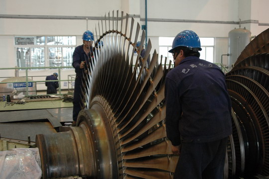 工程公司承擔(dān)的是西塞山#1機(jī)組首次A級檢修中的汽輪機(jī)本體、發(fā)電機(jī)、調(diào)速系統(tǒng)、及兩臺循環(huán)水泵的檢修工作。參加該項目的全體工作人員鉚足干勁,克服人員少、工期緊、任務(wù)重等諸多困難;自4月21日凌晨4:00停機(jī)開始,5月4日汽輪機(jī)高、中、低壓缸和十臺高中壓主汽門、調(diào)門解體完畢。同志們戰(zhàn)高溫,斗酷暑,每天工作十七、八個小時,有的同志24小時戰(zhàn)斗在生產(chǎn)現(xiàn)場,緊緊抓住“安全在我心中,質(zhì)量在我手中”的主旋律,嚴(yán)格按照ISO9001:2000質(zhì)量管理體系的要求,認(rèn)真搞好每一道檢修工序。先后完成了汽輪機(jī)本體常規(guī)解體檢修、高壓缸結(jié)合面漏汽、#4軸承更換、發(fā)電機(jī)抽穿轉(zhuǎn)子及有關(guān)試驗、兩臺循環(huán)水泵的解體檢修等項目。5月8日發(fā)電機(jī)轉(zhuǎn)子抽出,做完相關(guān)試驗,處理解決勵磁機(jī)定冷水流量低缺陷后于5月13日順利將發(fā)電機(jī)轉(zhuǎn)子穿入,創(chuàng)造了我公司大修中發(fā)電機(jī)轉(zhuǎn)子抽出、穿入工期最短記錄;在檢修循環(huán)水泵工作時,由于電廠在長江邊上,機(jī)組冷卻循環(huán)為深井立式泵與江電循環(huán)泵不一樣,檢修中危險性非常大,項目部經(jīng)理隆重親自下到幾十米深井了解情況,大家群策群力,按期啃下了這塊“硬骨頭”。在整個大修工程期間,嚴(yán)格執(zhí)行《安規(guī)》和西電有關(guān)管理制度,沒有發(fā)生一起人身輕傷和設(shè)備損傷事故。