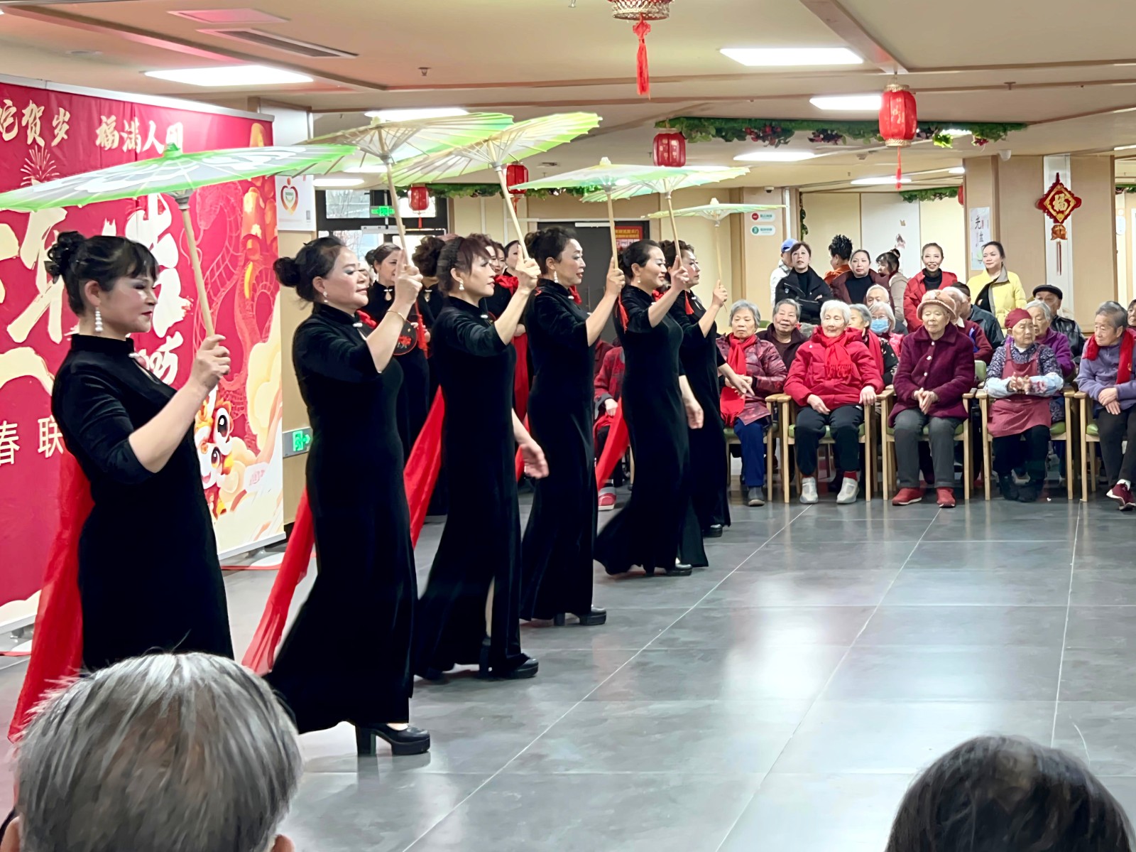 武侯吉福院推出“暖心短托”服務(wù),幫助2個(gè)有需要的家庭解決燃眉之急;聯(lián)動(dòng)武侯社區(qū)老年學(xué)院、卓雅藝術(shù)團(tuán)、家屬藝術(shù)團(tuán)開(kāi)展院內(nèi)迎新聯(lián)歡會(huì),長(zhǎng)者們的掌聲和歡笑聲交織在一起,院兒里“年味兒”別樣濃。
