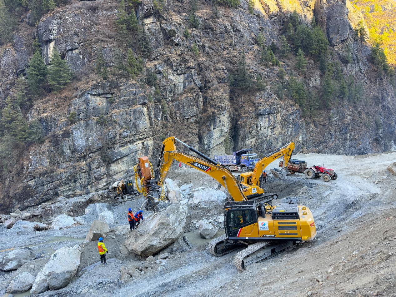 尼泊爾合資公司在春節(jié)期間依然保持白班、夜班24小時不間斷連軸轉,有序推進工程施工進度。截至目前,公司累計完成首部樞紐土石方開挖24萬m3,發(fā)電廠房邊坡土石方開挖3.5萬m3,引水隧洞施工支洞開挖300m,砂石拌合系統(tǒng)、加工廠、機修廠等臨建設施和對外道路改擴建工程完成80%,為實現首部樞紐一期導截流等年度目標奠定了堅實基礎。