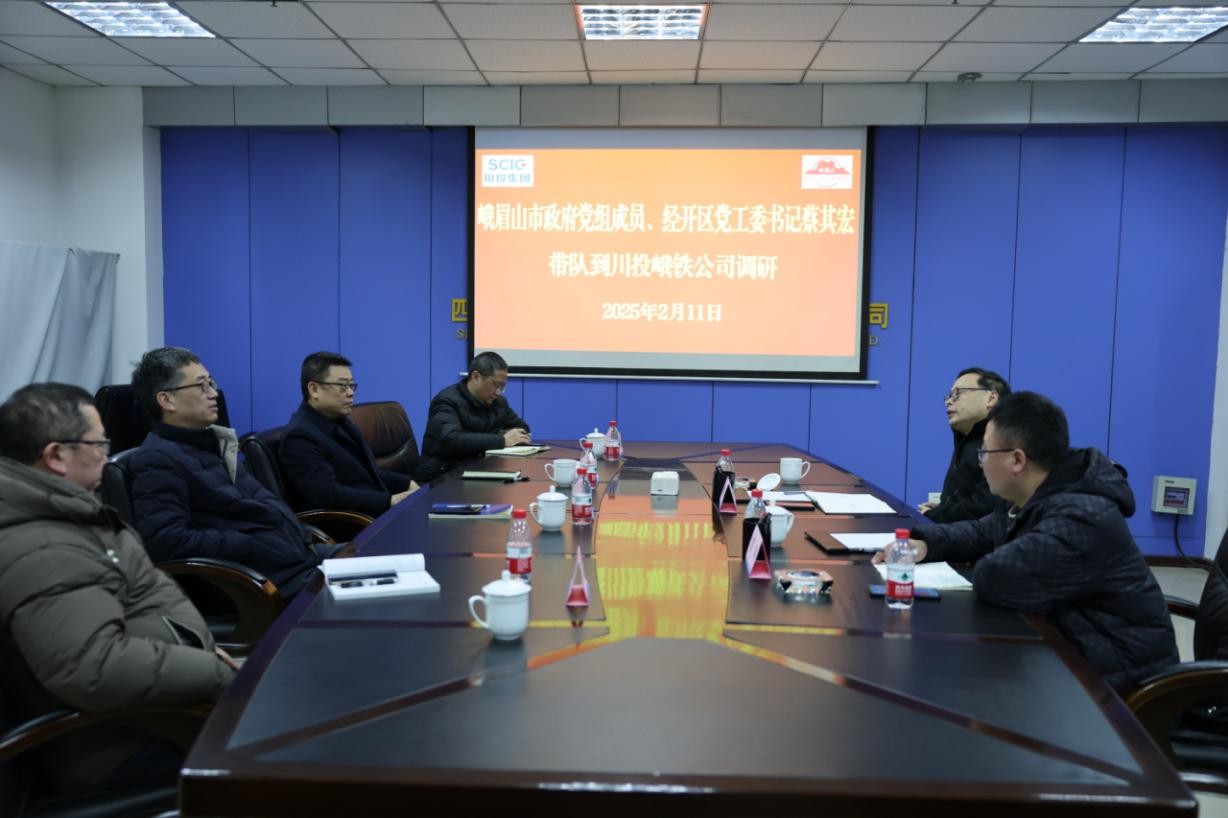 2月11日,峨眉山市政府黨組成員、經(jīng)開區(qū)黨工委書記蔡其宏帶領(lǐng)峨眉山市經(jīng)濟和信息化局黨組成員、總經(jīng)濟師賈翔赴川投峨調(diào)研交流項目開展進程。川投峨鐵公司黨委書記、董事長李勝章,黨委副書記、總經(jīng)理陳新龍,黨委委員、常務(wù)副總經(jīng)理李宏,總經(jīng)理助理李科參加會議。