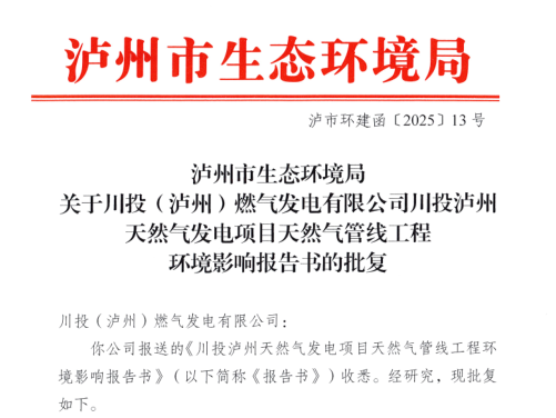 2月13日,《川投瀘州天然氣發(fā)電項(xiàng)目天然氣管線工程環(huán)境影響報(bào)告書(shū)》順利通過(guò)瀘州市生態(tài)環(huán)境局審批,成功獲得環(huán)評(píng)批復(fù),這一進(jìn)展標(biāo)志著項(xiàng)目天然氣管線工程在環(huán)境保護(hù)方面達(dá)到相關(guān)要求,為工程“三同時(shí)”建設(shè)奠定了重要基礎(chǔ),有助于項(xiàng)目的全速推進(jìn),也為項(xiàng)目的順利投產(chǎn)和未來(lái)的穩(wěn)定運(yùn)行提供了保障。