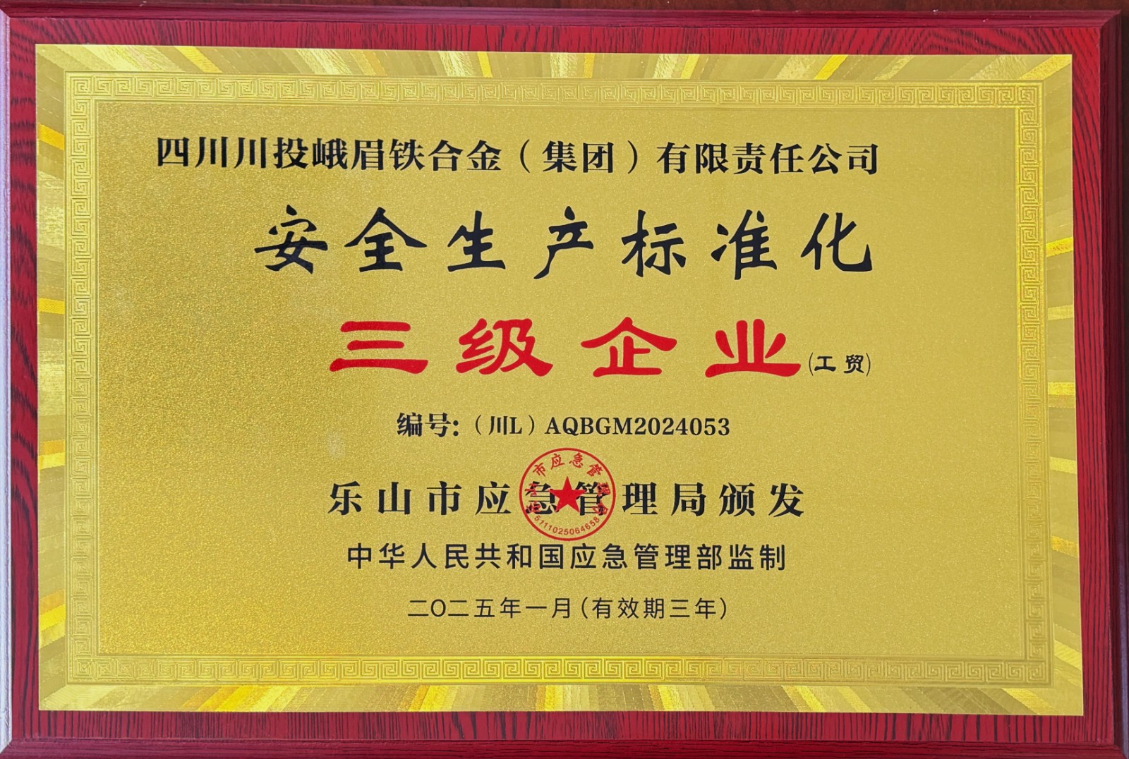 近日,川投峨鐵公司被樂山市應急管理局評為“工貿行業(yè)安全生產標準化三級企業(yè)”,對公司安全生產管理予以了充分肯定。