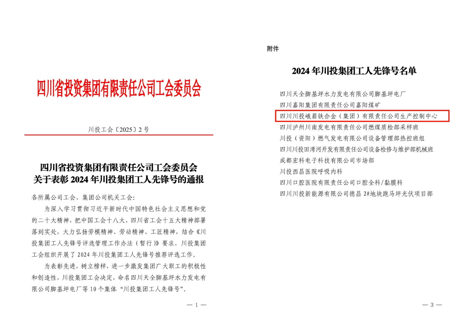 近日,由川投集團(tuán)工會開展的“2024年川投集團(tuán)工人先鋒號”結(jié)果新鮮出爐,川投峨鐵公司生產(chǎn)控制中心獲評“2024年川投集團(tuán)工人先鋒號”稱號。這支14人的隊(duì)伍,在公司的堅(jiān)強(qiáng)領(lǐng)導(dǎo)下,緊緊圍繞安全環(huán)保、生產(chǎn)調(diào)度、科技創(chuàng)新等職能職責(zé),以兢兢業(yè)業(yè)的工作態(tài)度,求真務(wù)實(shí)的工作作風(fēng),開拓創(chuàng)新的工作精神,吹響了公司安全生產(chǎn)和技術(shù)驅(qū)動的“先鋒號”。