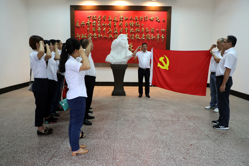 細(xì)雨紛紛,松柏肅穆。近日,嘉陽(yáng)集團(tuán)機(jī)關(guān)第三黨支部和營(yíng)銷公司黨支部的14名黨員一早就來(lái)到丁佑君烈士紀(jì)念館,在嘉陽(yáng)集團(tuán)黨委副書記范勤英同志的帶領(lǐng)下向佑君烈士的漢白玉雕像敬獻(xiàn)花籃、默哀致意。步入紀(jì)念館內(nèi),全體黨員們面對(duì)先烈遺像和鮮紅的黨旗,莊嚴(yán)地舉起右手,重溫入黨誓詞,牢記初心和使命,錚錚誓言久久回蕩在大家的心間。隨后,黨員們懷著無(wú)比崇敬的心情瞻仰了烈士紀(jì)念館,詳細(xì)了解佑君烈士的生平和英雄事跡,追憶在那個(gè)戰(zhàn)火紛飛的年代,無(wú)數(shù)先烈拋頭顱、灑熱血,赴湯蹈火,舍身取義,矢志不渝地用他們的青春和熱血,譜寫了可歌可泣的壯麗詩(shī)篇,用他們的生命和熱血換來(lái)了我們今天的歲月靜好。黨員同志們暗下決心,一定要傳承紅色基因,弘揚(yáng)先烈精神,不忘初心,砥礪前行!目前,“不忘初心牢記使命”主題教育正在公司全面展開,每名共產(chǎn)黨員都有義務(wù)用黨的創(chuàng)新理論武裝頭腦,立足崗位為企業(yè)的安全發(fā)展再立新功,用自己的實(shí)際行動(dòng)為黨的98周歲生日獻(xiàn)禮!