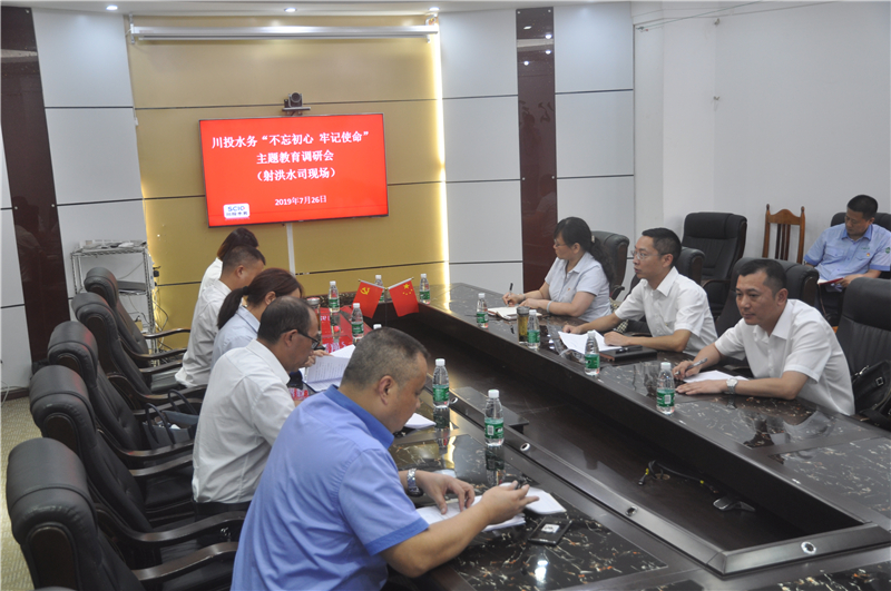 7月26日,川投水務(wù)黨委副書記、總經(jīng)理鄧銳帶領(lǐng)安全環(huán)保部經(jīng)理馬玉彬、生產(chǎn)技術(shù)部經(jīng)理王鎮(zhèn)到射洪水司開展“不忘初心、牢記使命”主題調(diào)研,與射洪水司領(lǐng)導班子及各部門負責人進行交流座談。