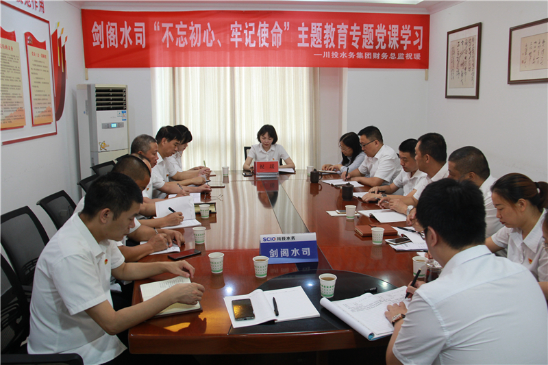 8月21日,川投水務(wù)集團(tuán)財(cái)務(wù)總監(jiān)祝瑗以“忠誠(chéng)黨的事業(yè)、不忘初心情懷、竭誠(chéng)服務(wù)社會(huì)、牢記使命擔(dān)當(dāng)”為題,為劍閣水司全體黨員講授“不忘初心、牢記使命”主題教育專題黨課。