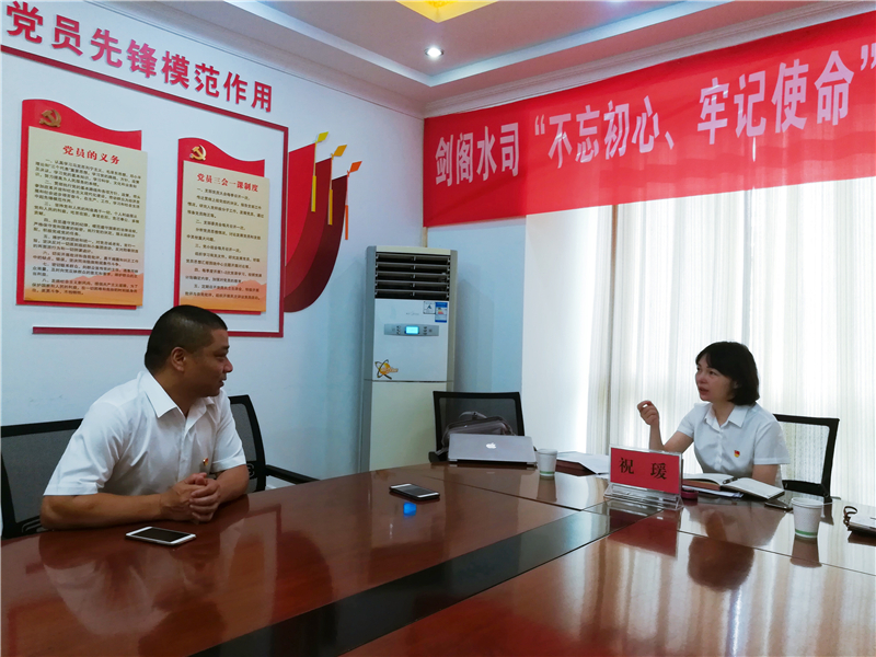 黨課結(jié)束后,祝瑗與劍閣水司的黨員同志開(kāi)展了談心談話,并在劍閣公水司總經(jīng)理何天政、副總經(jīng)理杜剛的陪同下,分別到普安和下寺水廠就夏季供水保障工作進(jìn)行了調(diào)研指導(dǎo)。