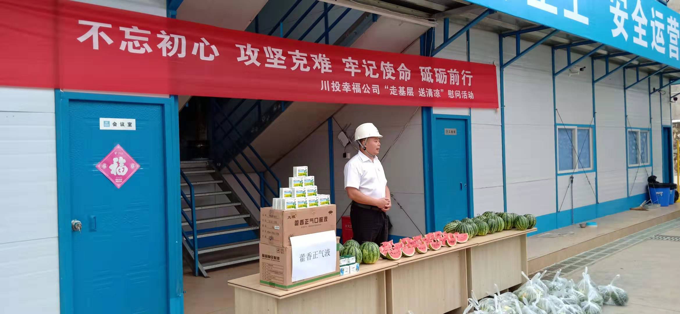 為踐行集團公司“雙轉雙促”活動要求,推動實施“雙爭雙百”計劃,回應項目施工一線民工訴求,營造安全、和諧的共建共享氛圍,7月23日,房地產(chǎn)公司黨支部副書記、總經(jīng)理張碧波在米易“時光水街”項目建設現(xiàn)場參加川投幸福公司“不忘初心攻堅克難 牢記使命 砥礪前行”走基層送清涼慰問活動。本次慰問以參建各方一線民工、施工管理人員為主,活動發(fā)放了西瓜、藿香正氣液、十滴水等防暑降溫用品,獲得參建各方一致好評。