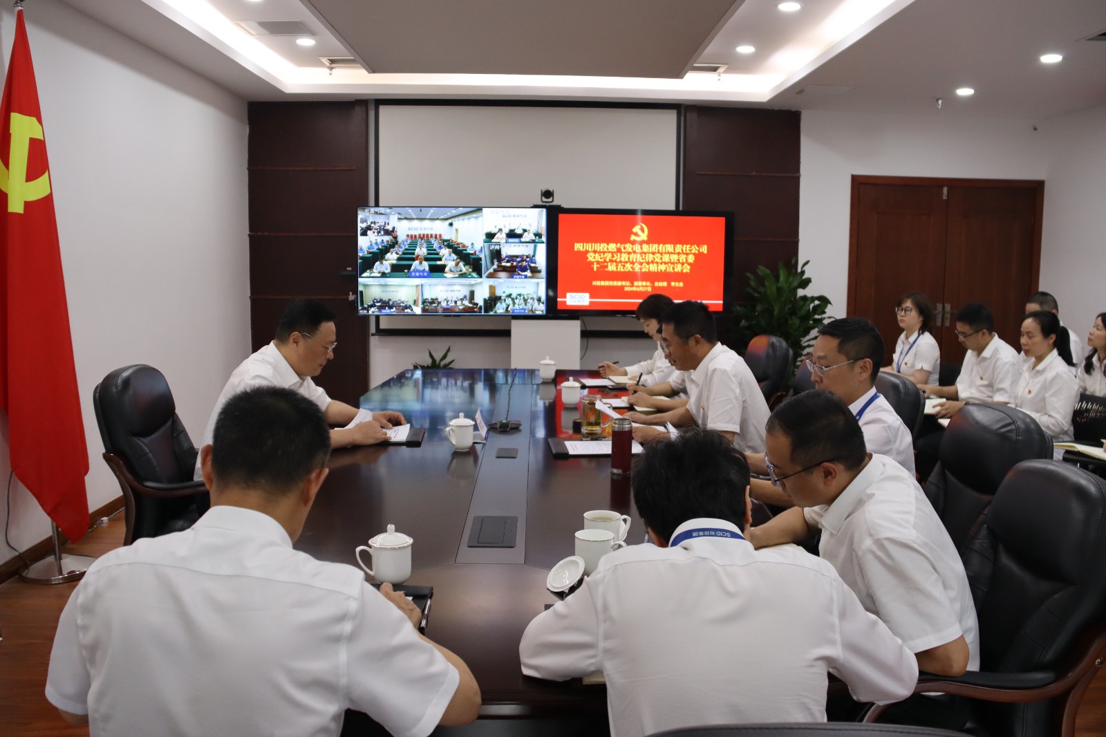 會(huì)議以“現(xiàn)場(chǎng)+視頻”形式召開(kāi),川投燃電本部及所屬企業(yè)黨員干部共計(jì)132人參加了此次黨紀(jì)學(xué)習(xí)教育專題黨課暨省委十二屆五次全會(huì)精神宣講會(huì)。