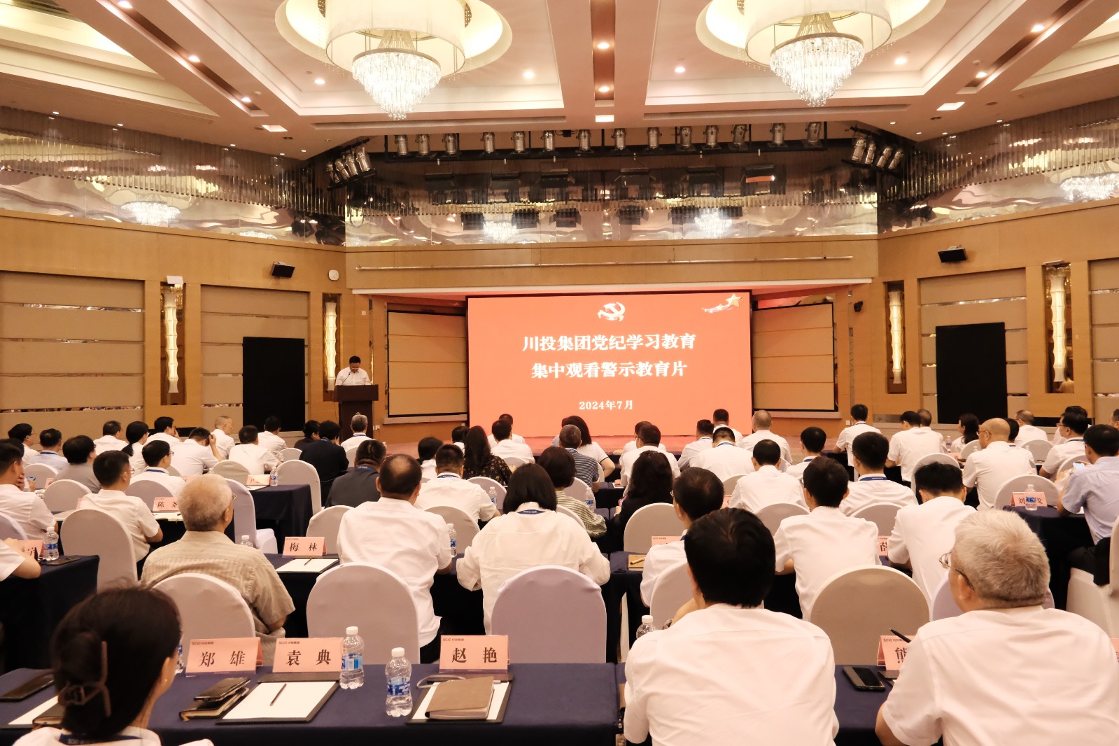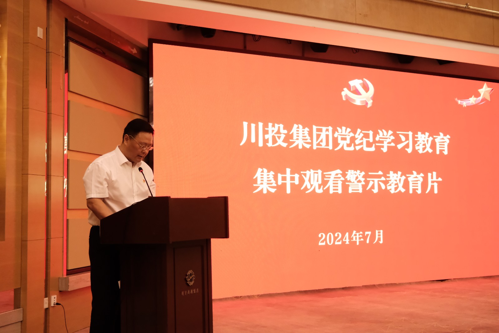 7月1日上午,川投集團(tuán)組織本部中層副職及以上黨員干部和在蓉企業(yè)領(lǐng)導(dǎo)班子成員94人集中觀看警示教育片《戒尺》,黨委副書記、副董事長、總經(jīng)理李文志主持。