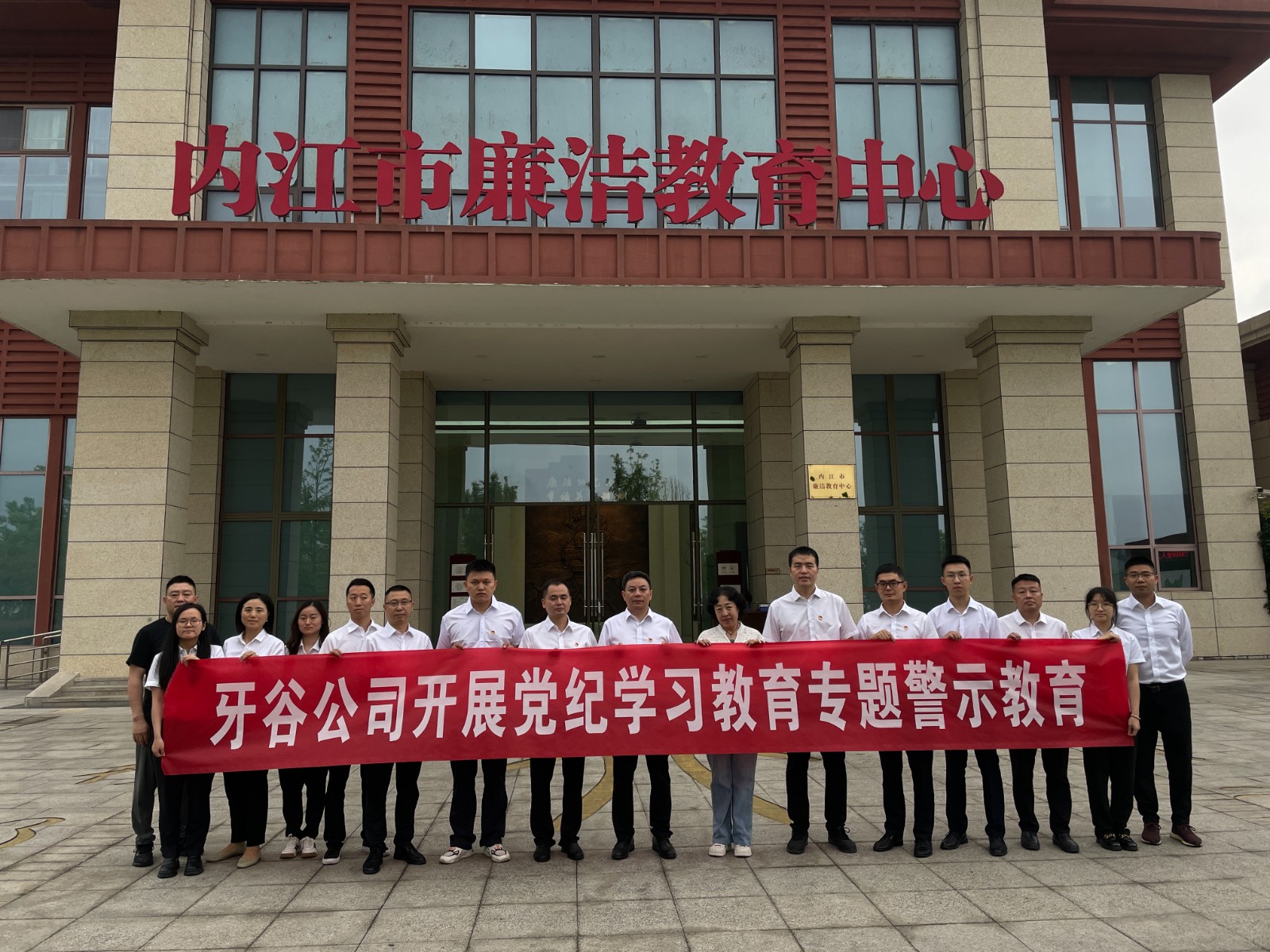 為深入開展黨紀學習教育,增強黨員干部遵規(guī)守紀思想自覺和行動自覺,6月3日,牙谷公司黨支部組織黨員干部到內(nèi)江市廉潔教育中心開展黨紀學習教育專題警示教育,公司全體黨員、物業(yè)公司、牙谷科創(chuàng)園區(qū)入駐企業(yè)黨員代表共計17人參加。
