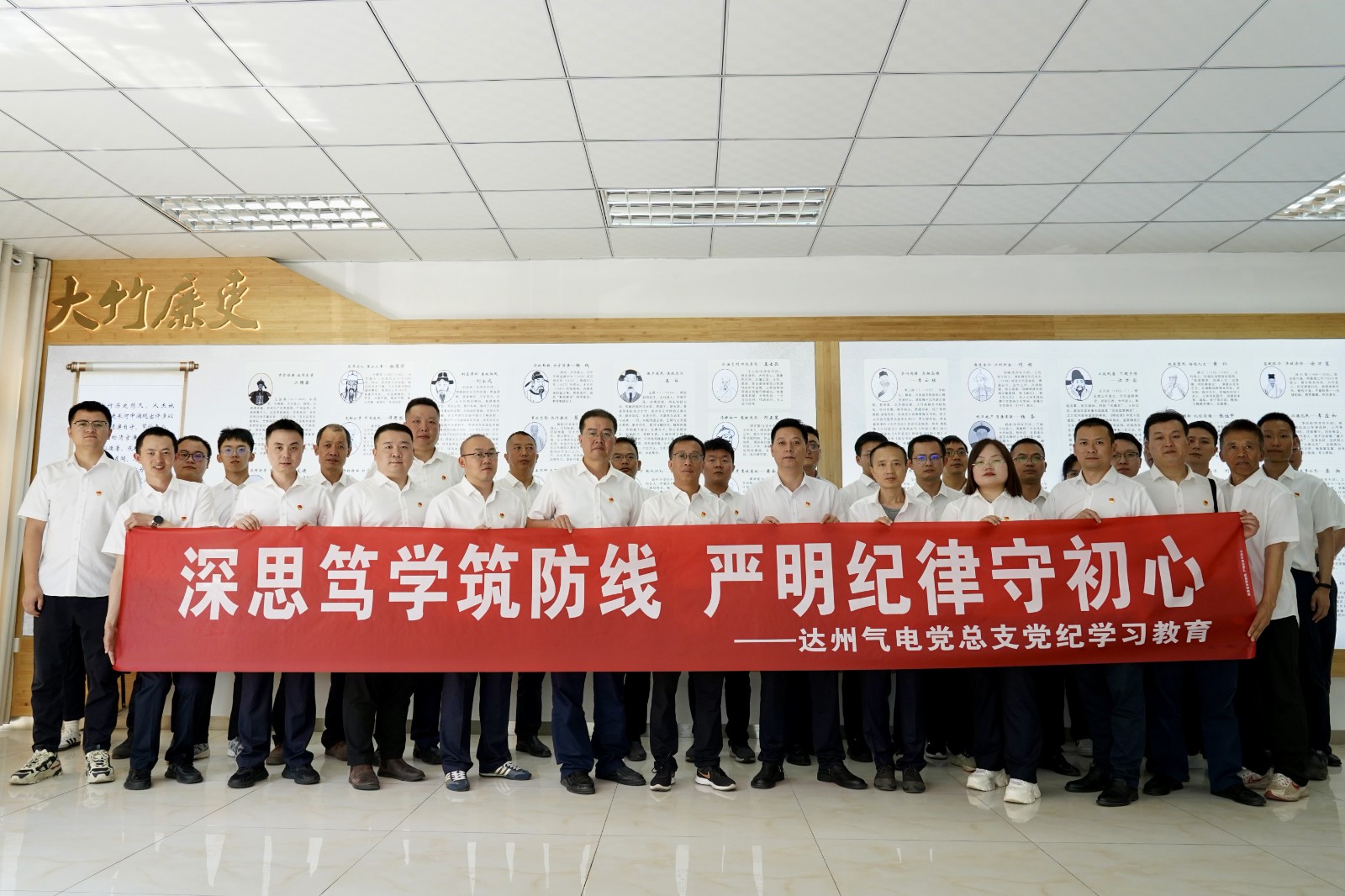 為推進(jìn)黨紀(jì)學(xué)習(xí)教育走深走實(shí),強(qiáng)化黨員同志守紀(jì)律、講規(guī)矩的政治意識,教育引導(dǎo)黨員干部從思想上正本清源、固本培元,營造勤勉務(wù)實(shí)、清正廉潔的發(fā)展氛圍。6月25日,公司黨總支組織全體黨員及入黨積極分子,赴大竹竹廉館開展黨紀(jì)學(xué)習(xí)教育主題黨日活動。
