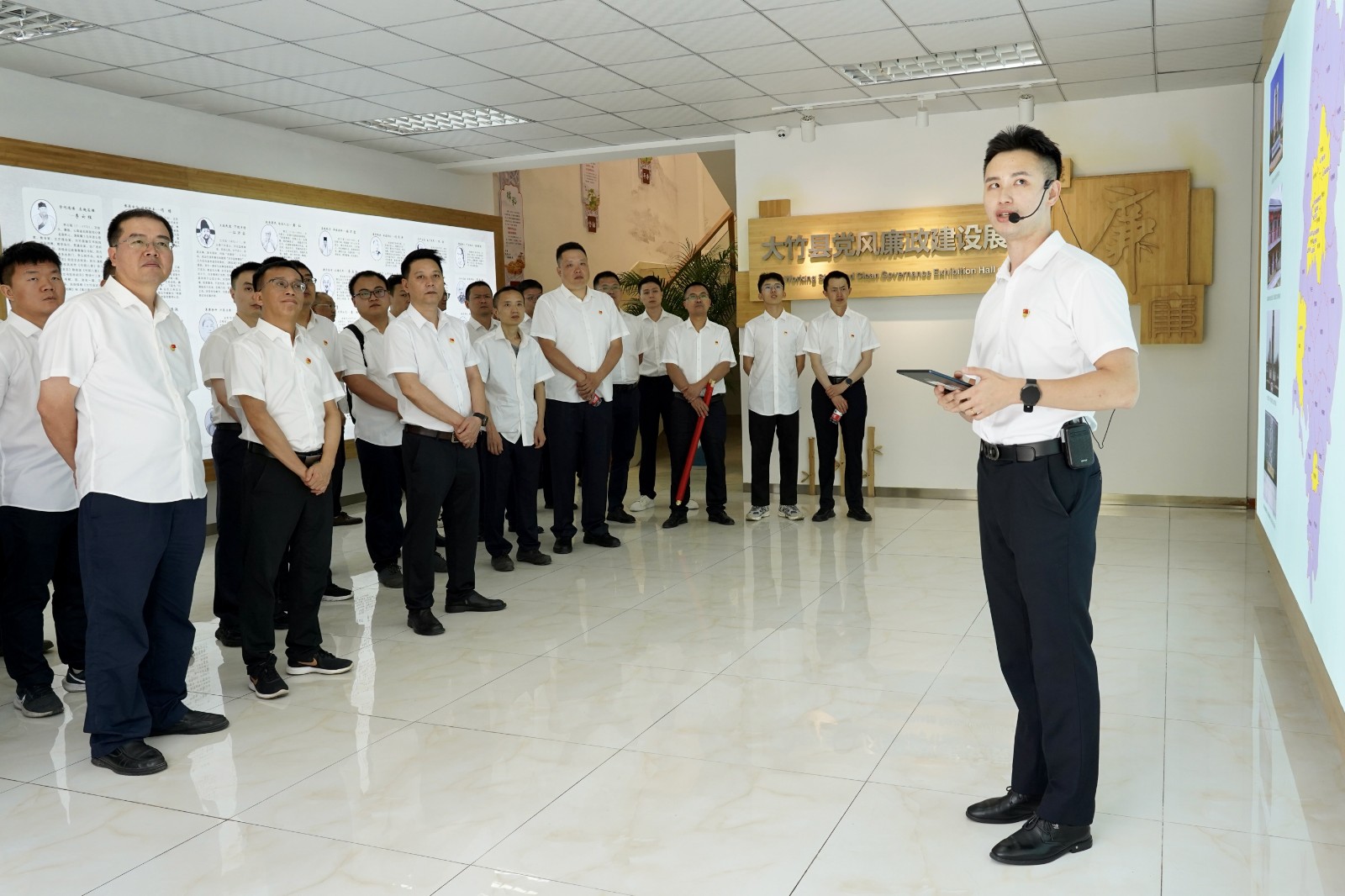 大竹竹廉館以“竹韻清風(fēng)·清廉大竹”為主題,分底樓序廳、二樓主廳兩部分。底樓序廳分主題形象墻、大竹清廉地圖及大竹廉吏三部分內(nèi)容;二樓主廳分高屋建瓴、英明論斷,櫛風(fēng)沐雨、砥礪前行,忠誠履職、輝煌歷程,崇廉尚潔、淳風(fēng)化俗,以案為鑒、知畏知止,調(diào)研基地、清廉名片,數(shù)字賦能、互動體驗(yàn)7個篇章,集廉潔警示教育特色和數(shù)字化體驗(yàn)特色為一體,讓參觀者從全面從嚴(yán)治黨的時代答卷中探尋廉潔力量,從清廉大竹建設(shè)特別是大數(shù)據(jù)監(jiān)督中汲取廉潔智慧,從違紀(jì)違法典型案例中得到深刻警示,永葆共產(chǎn)黨人清正廉潔的政治本色,努力營造風(fēng)清氣正的良好政治生態(tài)。