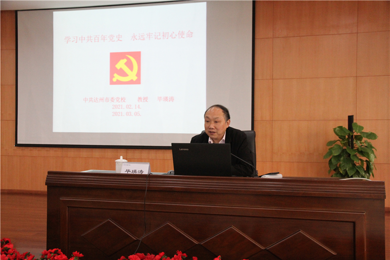 為深入貫徹《中共中央關(guān)于在全黨開(kāi)展黨史學(xué)習(xí)教育的通知》和集團(tuán)公司黨史學(xué)習(xí)教育工作部署會(huì)會(huì)議精神,激發(fā)黨員同志的黨史學(xué)習(xí)熱情,3月31日,川投氣電公司邀請(qǐng)中共達(dá)州市委黨校副校長(zhǎng)、教授畢瑛濤為公司全體黨員和入黨積極分子上了一堂以“學(xué)習(xí)百年黨史 不忘初心使命”為主題的專題黨課。公司黨委副書(shū)記、工會(huì)主席包婷婷主持。