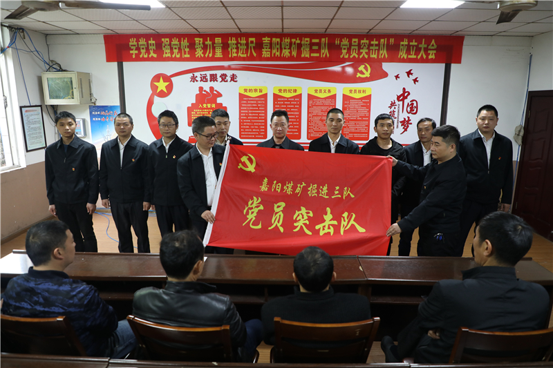 掘進(jìn)三隊(duì)黨支部書記秦剛在接過“黨員突擊隊(duì)”旗幟時(shí)表示:全隊(duì)上下務(wù)必堅(jiān)定信心,昂揚(yáng)斗志,發(fā)揚(yáng)嘉陽(yáng)人“特別能吃苦、特別能戰(zhàn)斗”的優(yōu)良作風(fēng),堅(jiān)定信心,戰(zhàn)勝困難,堅(jiān)決打贏這場(chǎng)“進(jìn)尺攻堅(jiān)戰(zhàn)”。黨群部部長(zhǎng)姚建軍希望掘三隊(duì)的黨員同志們要以黨史學(xué)習(xí)教育為契機(jī),提高思想認(rèn)識(shí),強(qiáng)化責(zé)任擔(dān)當(dāng),大力弘揚(yáng)煤礦“燃燒精神”,在急難險(xiǎn)重任務(wù)中彰顯黨員的先鋒模范作用,積極營(yíng)造“比、學(xué)、趕、超”的濃厚氛圍,以榜樣的力量帶動(dòng)全隊(duì)職工奮勇爭(zhēng)先,以黨建引領(lǐng)促進(jìn)安全生產(chǎn)任務(wù)的圓滿完成。