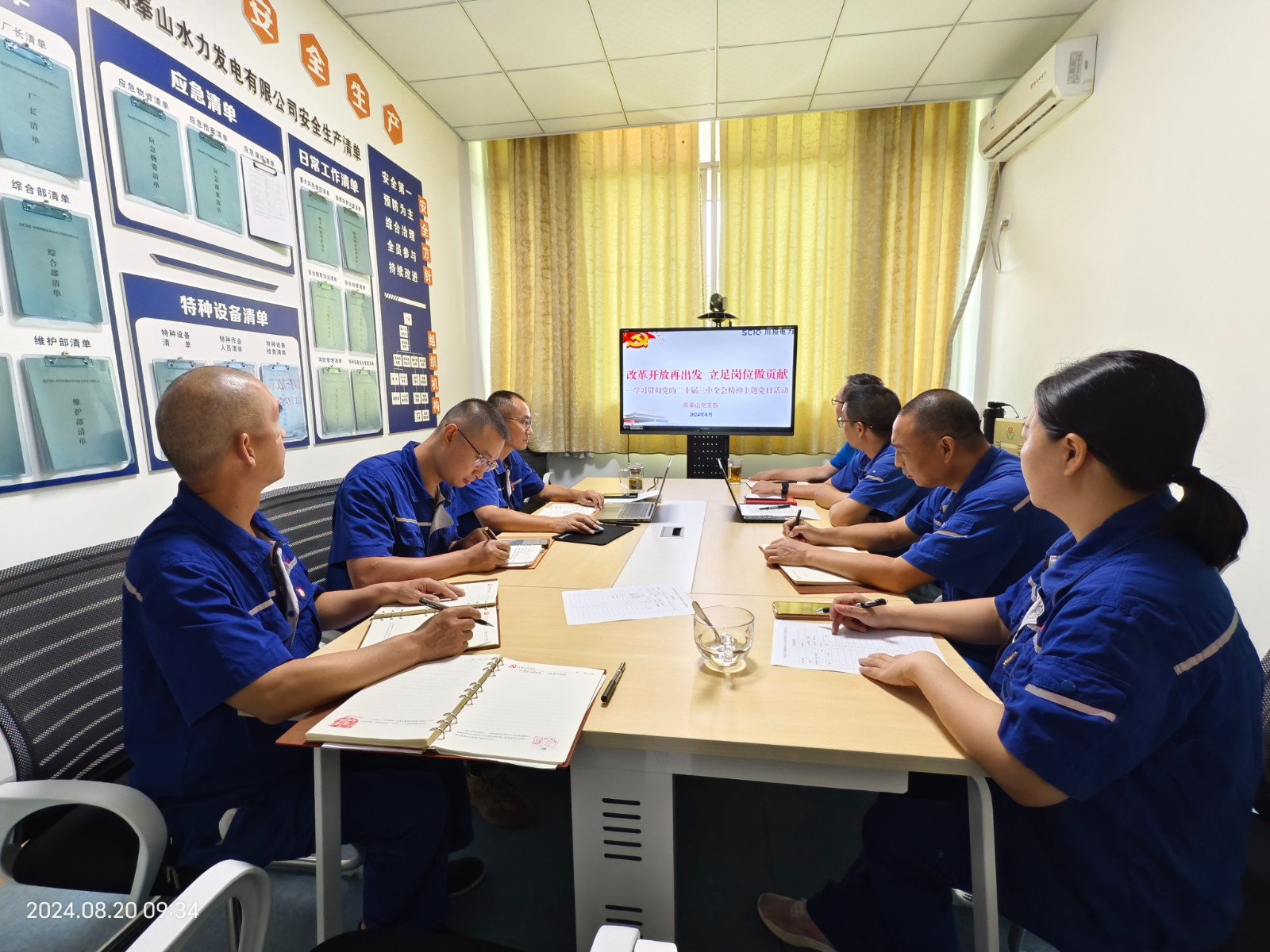 8月20日,高奉山黨支部以“改革開放再出發(fā),立足崗位做貢獻(xiàn)”為主題開展黨日活動(dòng),集中學(xué)習(xí)黨的二十屆三中全會(huì)精神,支部書記、廠長王橋主持并帶頭談?wù)J識體會(huì)。