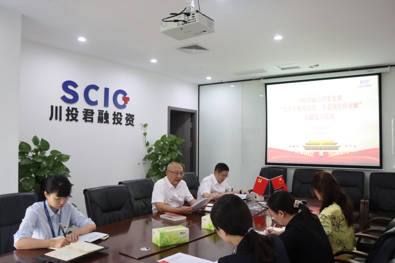 8月26日,川投君融黨支部以“改革開(kāi)放再出發(fā)、立足崗位作貢獻(xiàn)”為主題,開(kāi)展主題黨日活動(dòng),公司全體黨員參加。