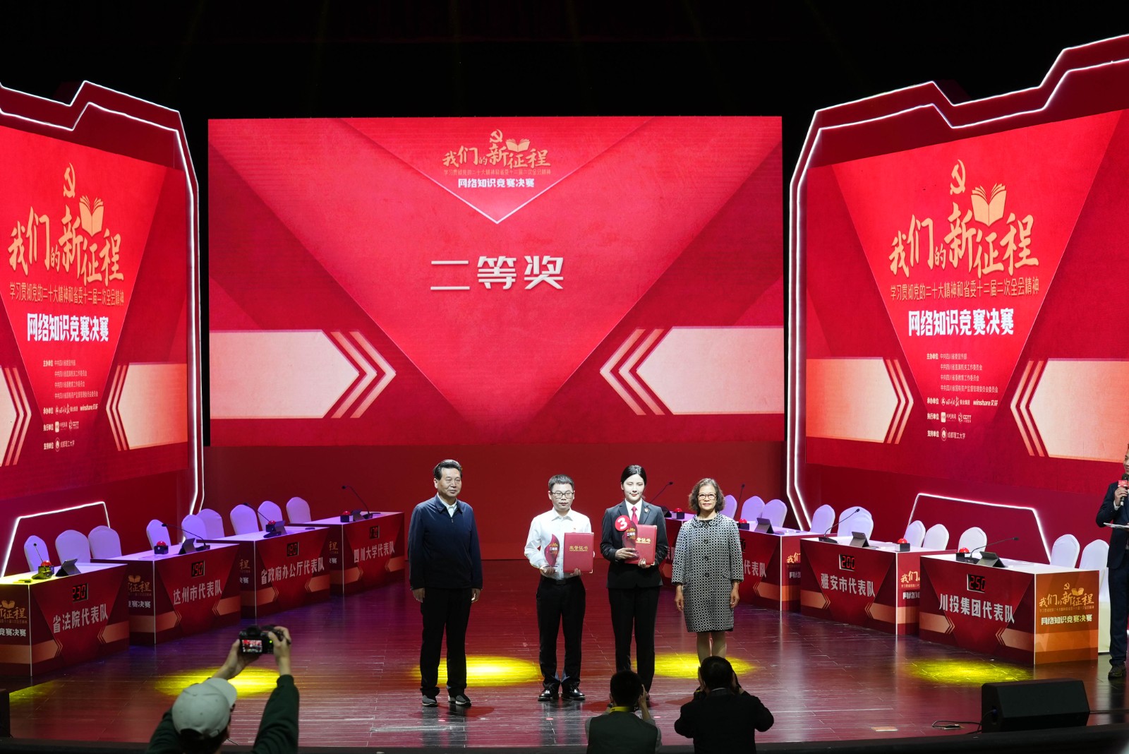 5月10日下午,由省委宣傳部、省國(guó)資委黨委等四部門主辦的“我們的新征程”——學(xué)習(xí)貫徹黨的二十大精神和省委十二屆二次全會(huì)精神網(wǎng)絡(luò)知識(shí)競(jìng)賽總決賽在成都舉行。川投集團(tuán)代表隊(duì)攜手省屬兄弟企業(yè)川煤集團(tuán)代表隊(duì),與來(lái)自省直機(jī)關(guān)、市州、國(guó)企、高校等系統(tǒng)的8支隊(duì)伍、24名選手闖入決賽、同場(chǎng)競(jìng)技。經(jīng)過(guò)近2個(gè)小時(shí)的激烈角逐,川投集團(tuán)代表隊(duì)最終以總分第二名的優(yōu)異成績(jī),榮獲大賽二等獎(jiǎng);川投集團(tuán)榮獲優(yōu)秀組織獎(jiǎng)。