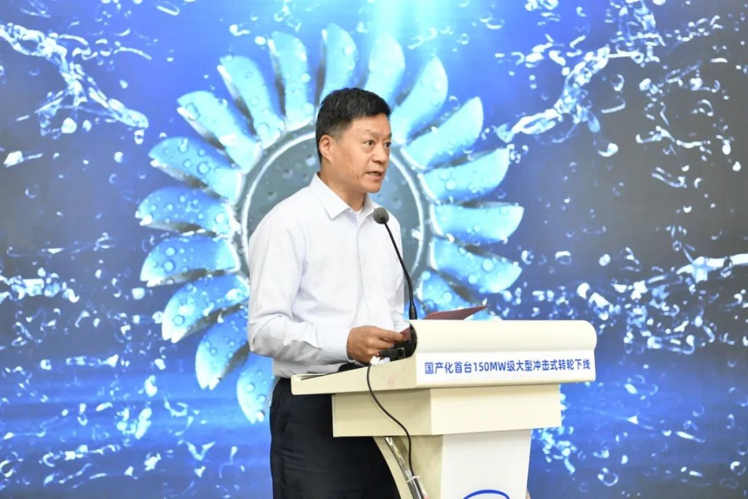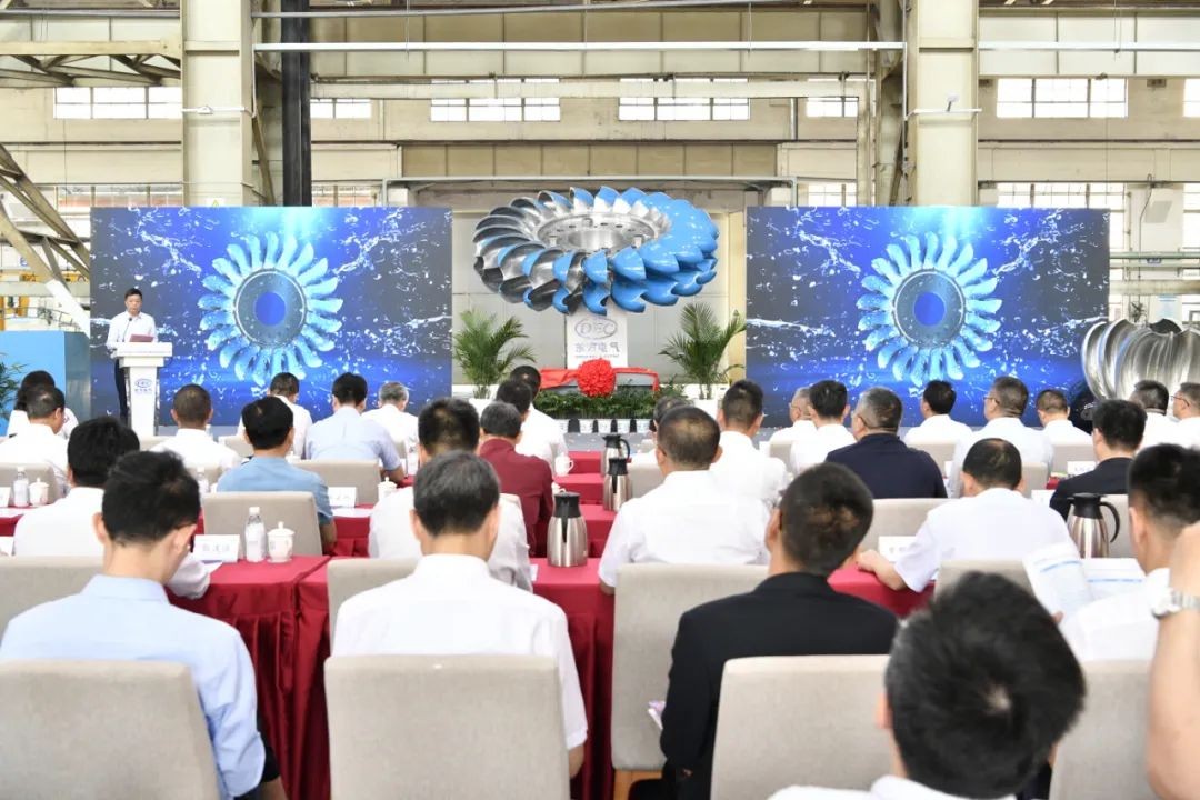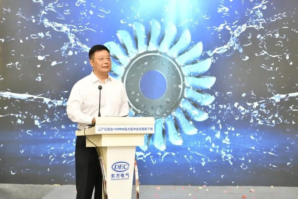 俞培根代表東方電氣集團向出席本次活動的領導專家表示熱烈的歡迎,對大家長期以來對東方電氣集團的關心、支持與幫助表示衷心的感謝,向參與150兆瓦級沖擊式轉輪國產化研制的全體人員表示熱烈的祝賀。他表示,東方電氣集團始終秉持產業(yè)報國初心和制造強國使命,把科技自立自強作為發(fā)展的戰(zhàn)略支撐,用實際行動“把關鍵核心技術牢牢掌握在自己手中”。本次完工下線的國產化首臺150兆瓦級沖擊式轉輪是東方電氣集團深入踐行國家“雙碳”戰(zhàn)略、瞄準國內空白和世界一流開展關鍵核心技術攻關、推動我國能源裝備自立自強的具體實踐。東方電氣集團將持續(xù)堅持服務國家戰(zhàn)略,與相關單位、創(chuàng)新聯(lián)合體深入合作,按照既定的“三步走”戰(zhàn)略,全力推進巨型沖擊式水電機組關鍵核心技術攻關,不斷提高我國能源裝備行業(yè)核心競爭力,為加快建設科技強國 ,更好服務“雙碳”目標作出新的更大貢獻。