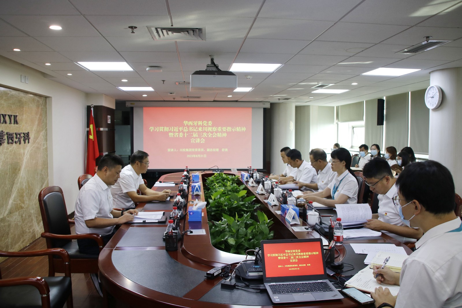集團(tuán)公司黨委組織部、黨委巡察辦相關(guān)負(fù)責(zé)同志到會(huì)指導(dǎo);華西牙科在家班子成員參加會(huì)議,黨委組織部、黨委宣傳部、紀(jì)檢工作部主要負(fù)責(zé)同志列席會(huì)議。中層以上管理人員、各基層黨支部書記共20余人參加宣講。