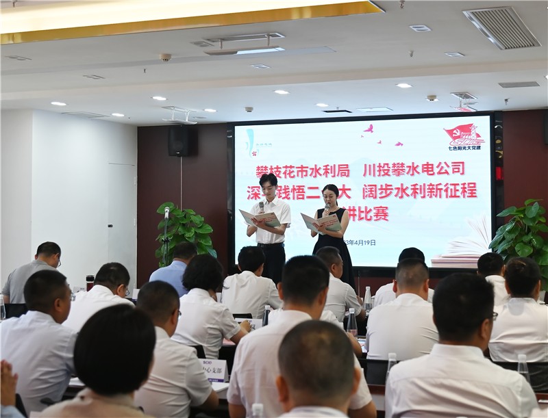 為全面貫徹黨的二十大精神,扎實(shí)開展學(xué)習(xí)貫徹習(xí)近平新時(shí)代中國特色社會(huì)主義思想主題教育,在攀水電黨總支開展主題教育領(lǐng)導(dǎo)干部讀書班期間,為豐富學(xué)習(xí)形式,營造濃厚學(xué)習(xí)氛圍,近日,攀水電公司與攀枝花市水利局共同舉辦了“深學(xué)踐悟二十大、闊步水利新征程”深化“水潤花城”黨建品牌建設(shè)暨政企黨組織共建活動(dòng),開展征文和演講比賽。攀枝花市直機(jī)關(guān)工委常務(wù)副書記鮮明,攀枝花市水利局黨組成員、副局長林兆東,黨組成員、機(jī)關(guān)黨委書記胡嘉,川投能源副總經(jīng)理、攀水電公司黨總支書記、董事長、攀新能源董事長徐孝剛及讀書班成員參加此次活動(dòng)并擔(dān)任評委。