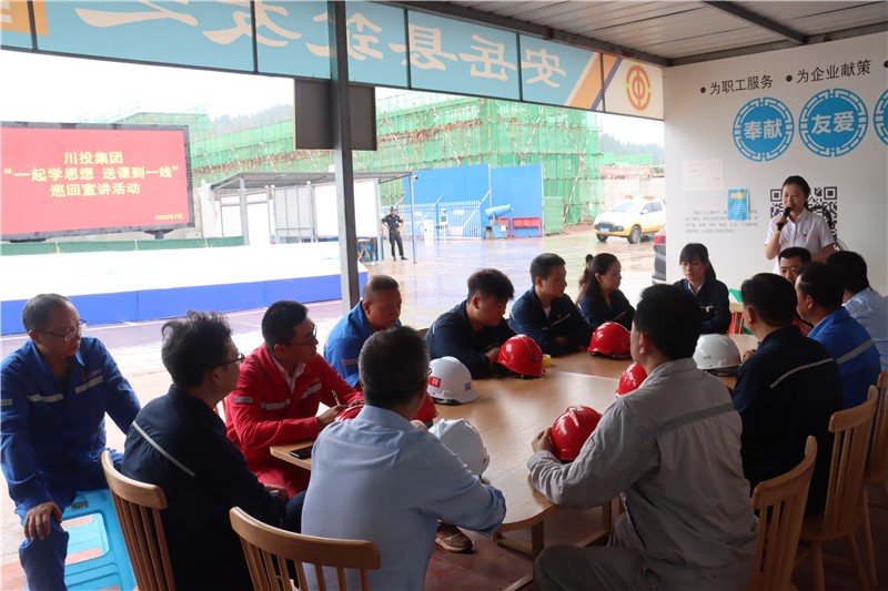 為深入學(xué)習(xí)宣傳貫徹黨的二十大精神,做好省委十二屆三次全會精神宣傳宣講,落實主題教育“學(xué)思想、強(qiáng)黨性、重實踐、建新功”總要求,7月20日,川投集團(tuán)巡回宣講隊到資陽燃?xì)怆娬卷椖块_展“一起學(xué)思想 送課到一線”巡回宣講活動。資陽氣電公司黨支部書記、執(zhí)行董事、總經(jīng)理梁紅兵出席并講話,資陽氣電和EPC總承包項目部的黨員代表、員工代表參加宣講活動。