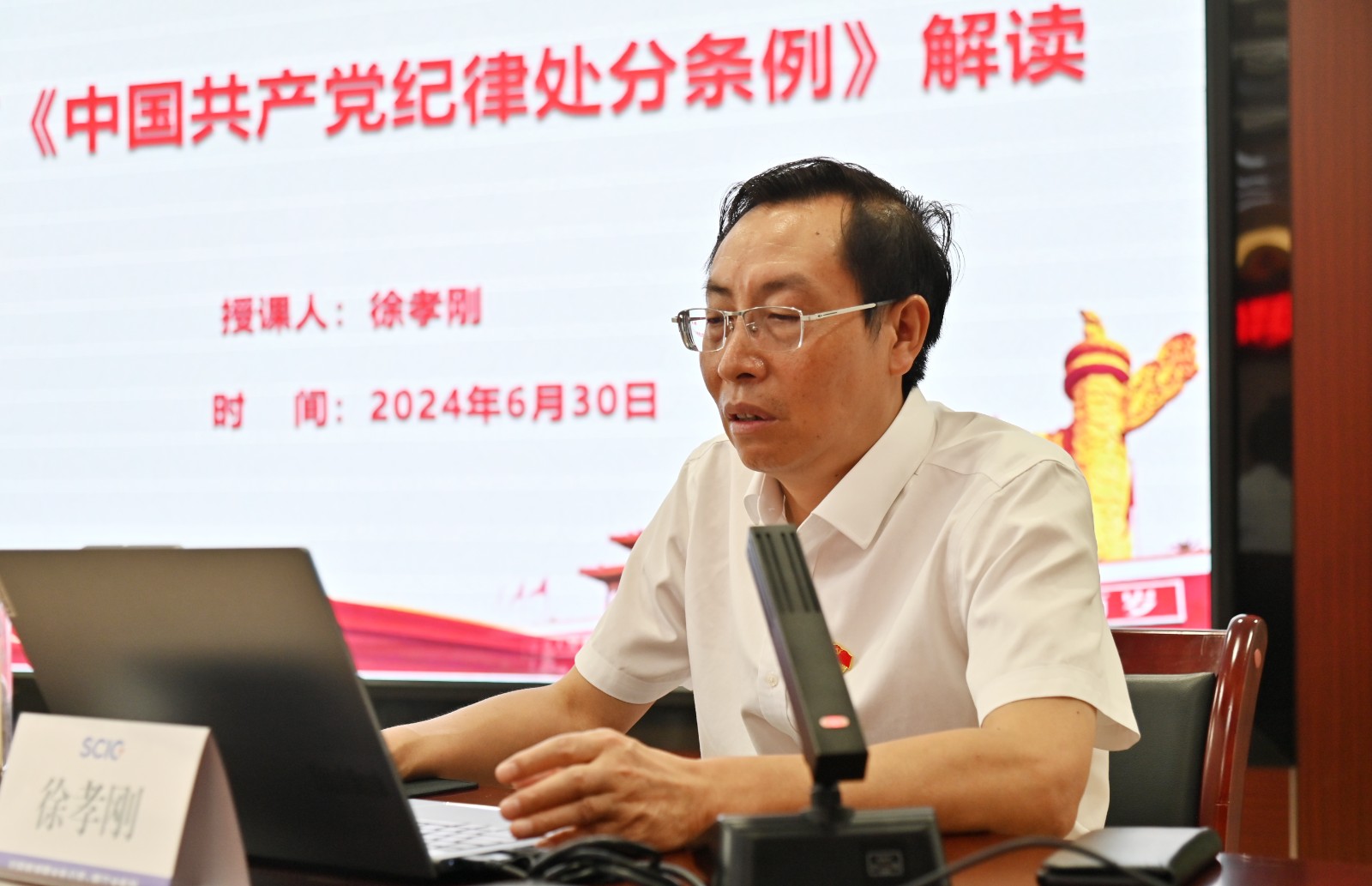 在全黨開展黨紀(jì)學(xué)習(xí)教育和黨的103歲生日來(lái)臨之際,按照川投能源黨委和攀水電黨總支的安排部署,6月30日上午,川投能源副總經(jīng)理、攀水電公司黨總支書記、董事長(zhǎng)徐孝剛講授了黨紀(jì)學(xué)習(xí)教育紀(jì)律黨課并宣講省委十二屆五次全會(huì)精神,公司全體員工、參建單位負(fù)責(zé)人及黨員代表共計(jì)50余人參加。