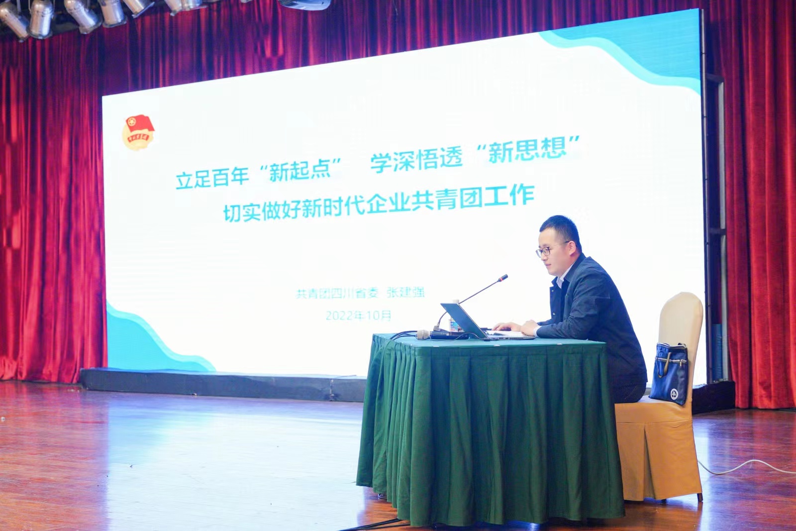 首期主講嘉賓是共青團(tuán)四川省委青年發(fā)展部副部長(zhǎng)張建強(qiáng)。他以“立足百年新起點(diǎn) 學(xué)深悟透新思想——切實(shí)做好新時(shí)代企業(yè)共青團(tuán)工作”為主題,帶領(lǐng)大家重溫了習(xí)近平總書(shū)記在黨的二十大報(bào)告中對(duì)青年的殷切寄語(yǔ),系統(tǒng)介紹了習(xí)近平總書(shū)記關(guān)于青年工作的重要思想的內(nèi)涵要義,全面回顧了新時(shí)代青年工作的探索實(shí)踐,并就如何做好新時(shí)代企業(yè)共青團(tuán)和青年工作傳授了經(jīng)驗(yàn)做法。