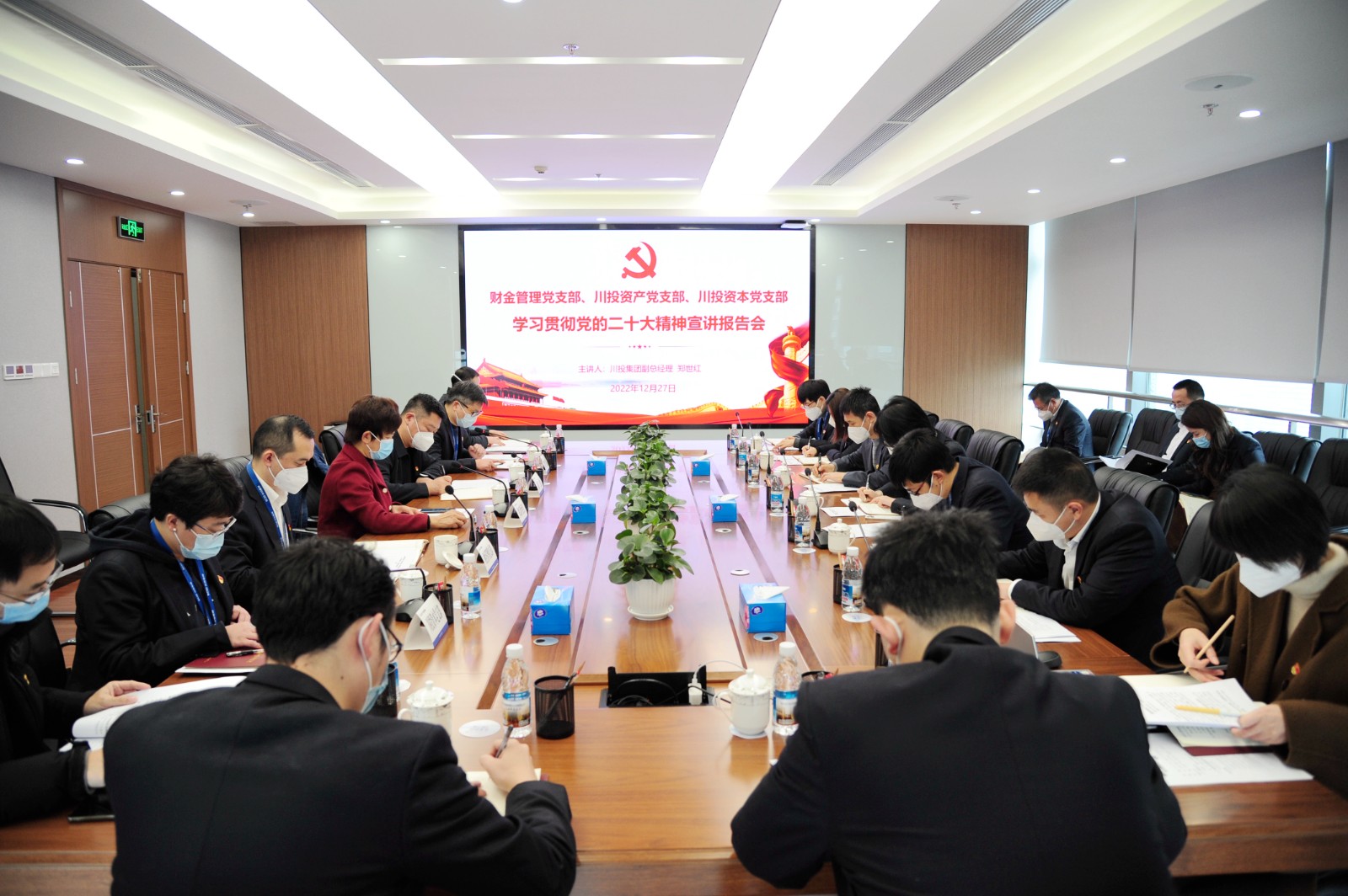 12月27日下午,為深入學習宣傳貫徹落實黨的二十大精神,根據(jù)集團黨委部署要求,集團公司副總經(jīng)理鄭世紅赴財金管理黨支部、川投資產黨支部、川投資本黨支部宣講黨的二十大精神。集團公司財務總監(jiān)黃勁以普通黨員身份參加宣講報告會。會議由川投資產黨支部書記萬易明主持。