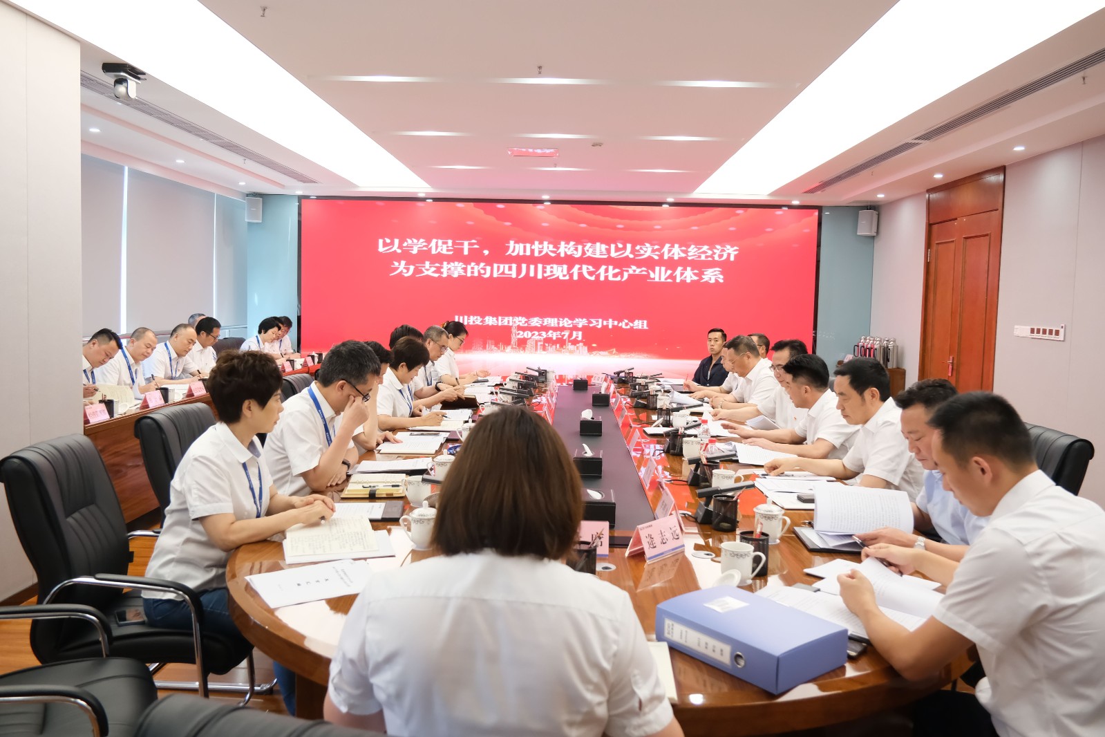 7月21日,川投集團(tuán)黨委召開理論學(xué)習(xí)中心組2023年第6次學(xué)習(xí)(擴(kuò)大)會(huì),圍繞“以學(xué)促干,加快構(gòu)建以實(shí)體經(jīng)濟(jì)為支撐的四川現(xiàn)代化產(chǎn)業(yè)體系”開展專題研討。省國資委二級巡視員符定平,省國資委宣傳工作處、企業(yè)領(lǐng)導(dǎo)人員管理處相關(guān)同志到會(huì)旁聽督導(dǎo)。集團(tuán)黨委書記、董事長吳曉曦主持會(huì)議,集團(tuán)黨委理論學(xué)習(xí)中心組成員出席會(huì)議,集團(tuán)總經(jīng)理助理、各部門負(fù)責(zé)人列席會(huì)議。